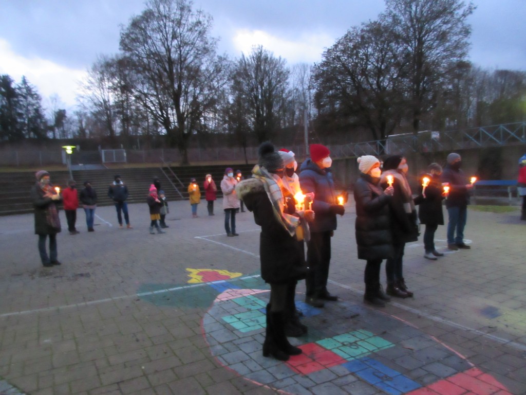 Kann man - so stellte der Geistliche die Frage - kann man denn auf einem Schulhof eine würdige Weihnachts-Andacht halten? Ist das hier nicht viel zu nüchtern? Ist dieser Ort doch der Arbeitsplatz der Schulkinder. Weihnachten am Arbeitsplatz? Genau das sei damals auch so gewesen: Jesus wird nicht in einem Tempel geboren, er wird in einem Stall geboren, dem Arbeitsplatz der Hirten. Jesus kommt in unseren Arbeitstag, in den Alltag - damals wie heute.