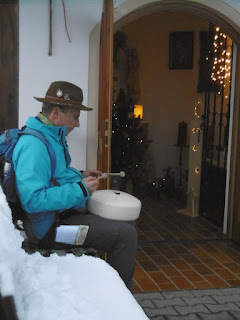 Im Hintergrund sieht man die Kirchaitnacher Kirche, vor welcher Pilger Rudi am 4. Dezember (Barbara-Tag) das Barbaralied gesungen hat. Das barbara lied hört ihr auch gleich zu Beginn vom Bilderalbum.