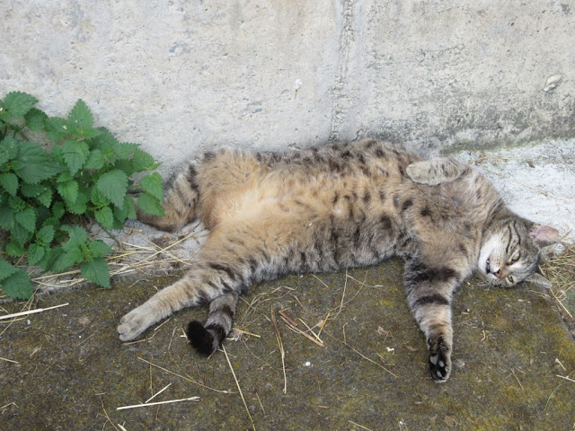 | Das Gras auf unserer Nebenan-Wiese ist mittlerweile so wild gewachsen, dass Foxi als Schlafplatz den Blumentopf bevorzugt. Die darin gewachsenen Pflanzen sind zum Glück vollkommen verdorrt. |