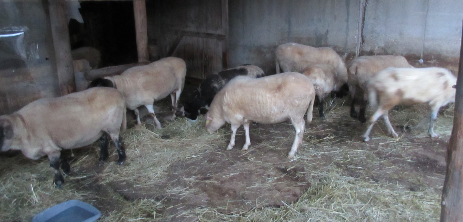 | Die Stallarbeit ist beendet, die Schafe kommen von der Weide zurück. Hier begrüßt uns Waldschaf Waltraud. |